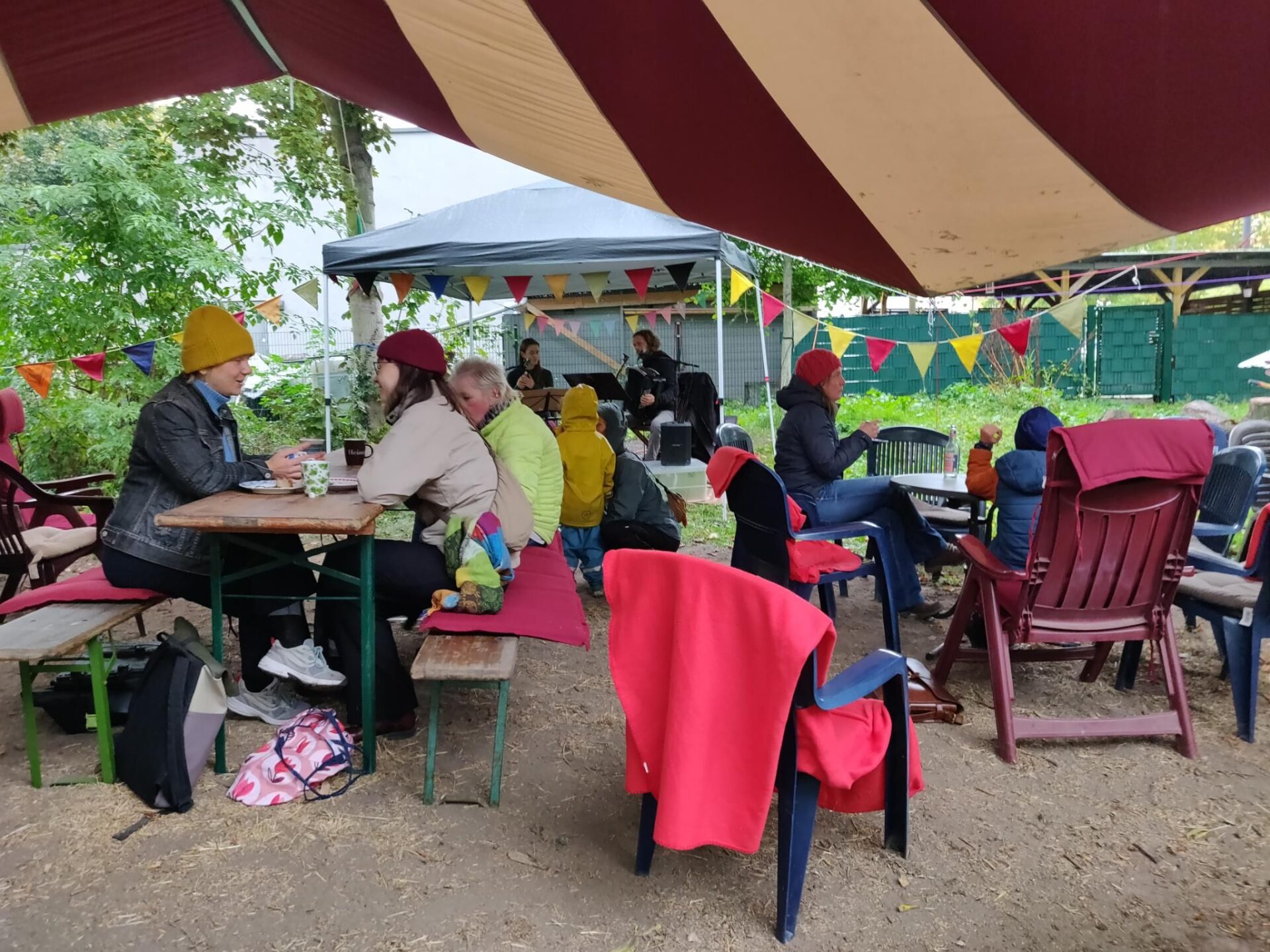 Unser jährliches Herbstfest haben wir diesmal im Regen gefeiert – wir waren überrascht, wie viele Menschen sich trotz des Wetters auf den Weg zu uns gemacht haben! Mit Erleichterung konnten wir feststellen, dass wir inzwischen über genügend überdachte Flächen im Garten verfügen, um eine solche große Veranstaltung trotzdem gut ausrichten zu können.