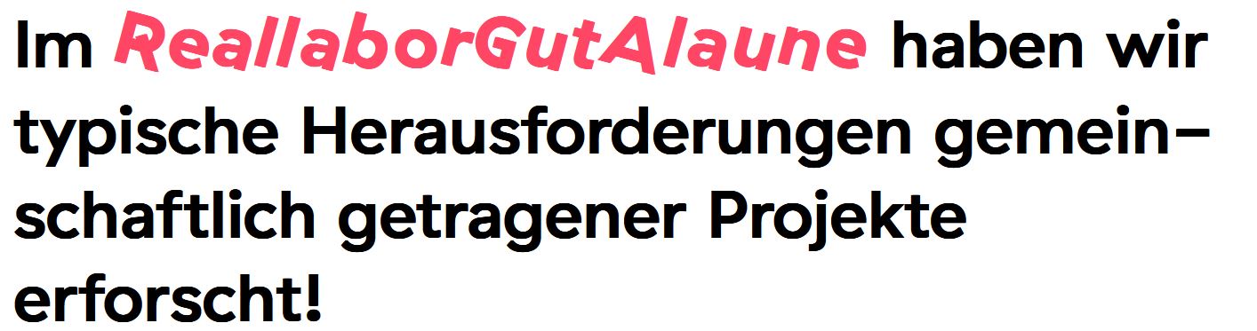 Mit gemeinschaftlich getragen meinen wir, dass Menschen sich auf Augenhöhe organisieren, wie z.B. in Wohnprojekte, SoLaWis und politischen Initiativen. Andere sagen dazu Commons. Mit Reallabor meinen wir praktische Aktionsforschung: Wir haben Forschungswerkstätten und Mitmachbaustellen organisiert um mit Engagierten verschiedener Initiativen zusammen typische Herausforderungen selbstorganisierter Projekte zu erforschen.